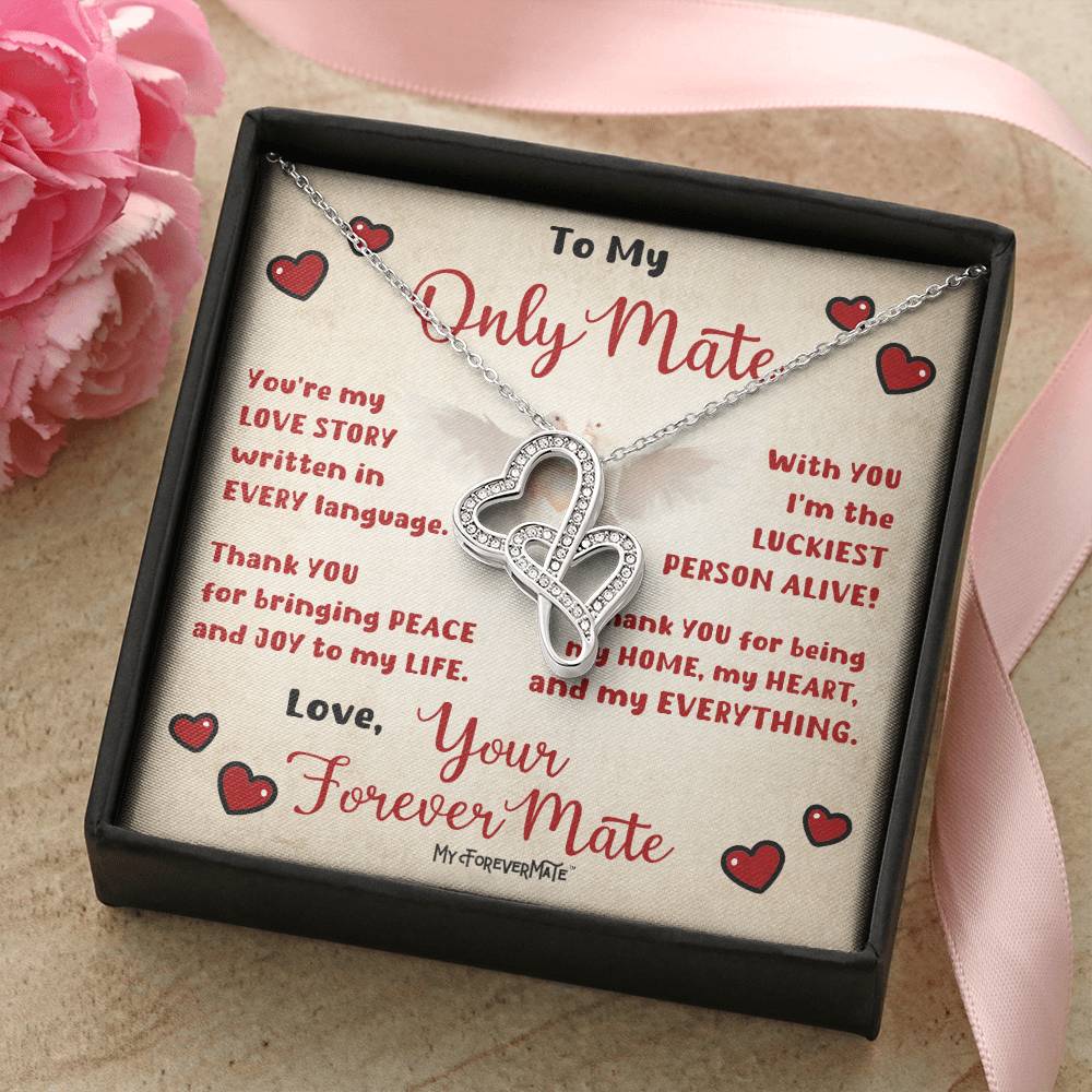 Picture the joy lighting up your loved one's face when they lay eyes on our stunning Heart-to-Heart Pendant Necklace! The intertwined hearts symbolize an unbreakable bond between two souls. Crafted with a touch of magic, this pendant boasts a 14K white gold finish and twinkles with delicate cubic zirconia crystals, adding just the right amount of sparkle. It's effortlessly elegant and elevates any outfit, making it the perfect gift for that special someone!